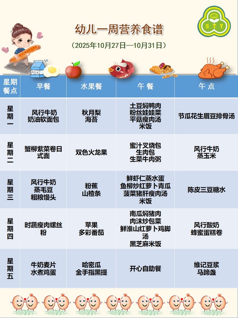 幼儿一周营养食谱(2025年10月27日-10月31日)