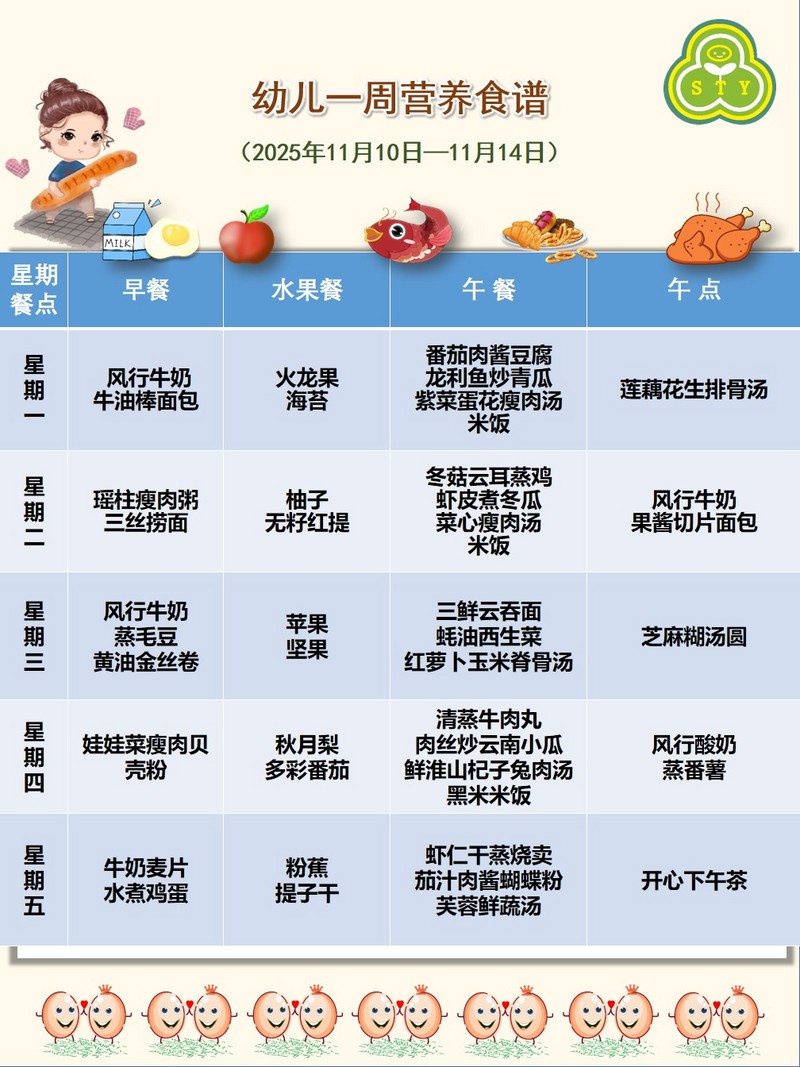 幼儿一周营养食谱(2025年11月10日-11月14日)