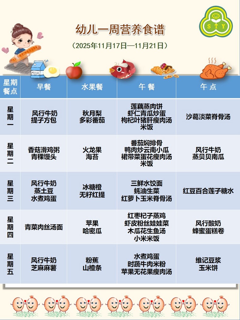 幼儿一周营养食谱(2025年11月17日-11月21日)