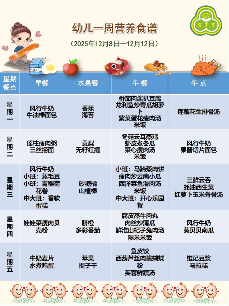 幼儿 一周营养食谱(2025年12月8日-12月12日)