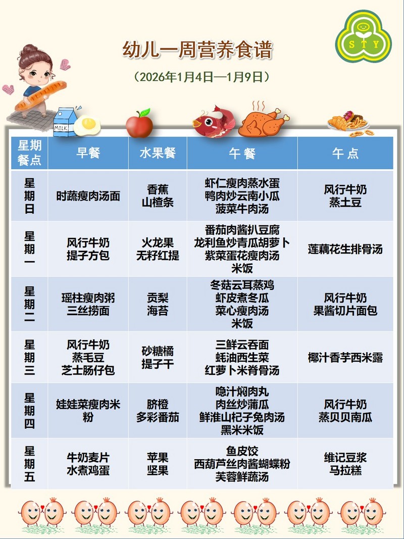 幼儿一周营养食谱(2026年1月4日-1月9日)