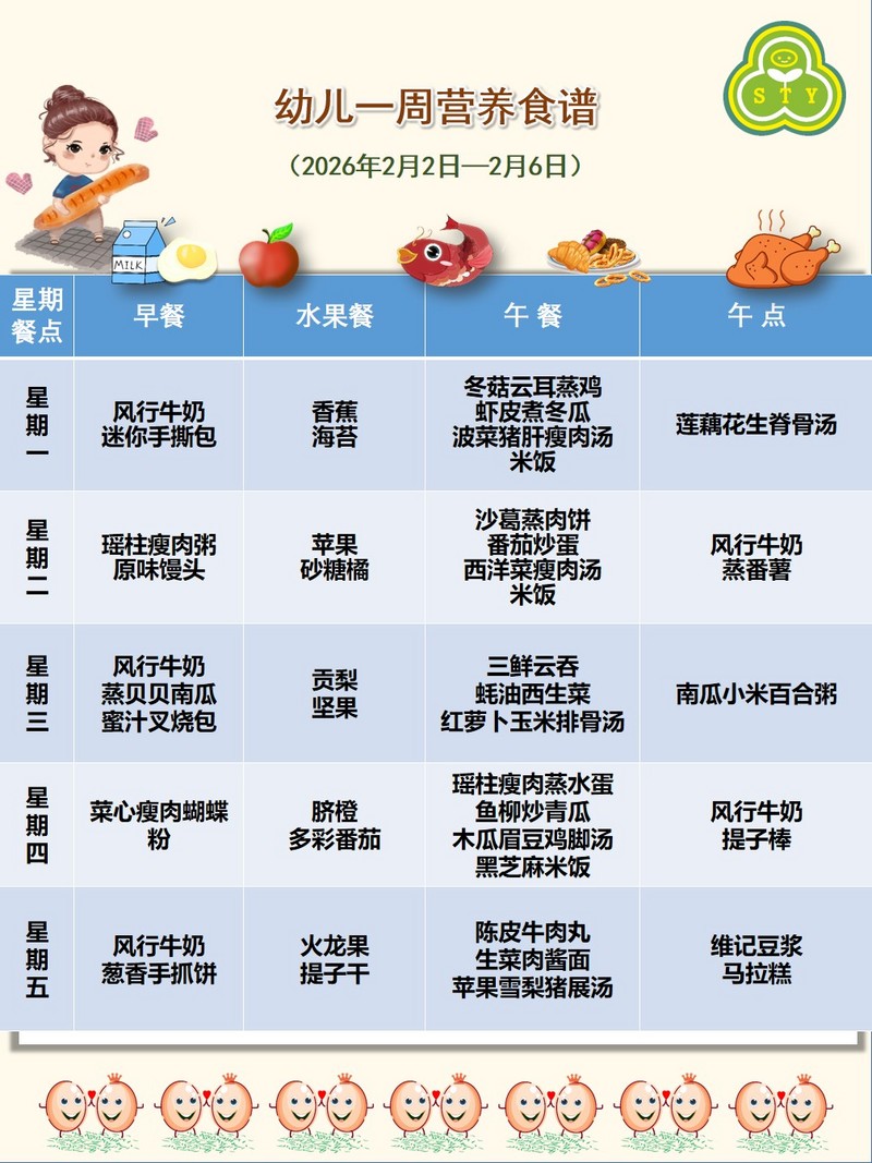 幼儿一周营养食谱(2026年2月2日-2月6日)