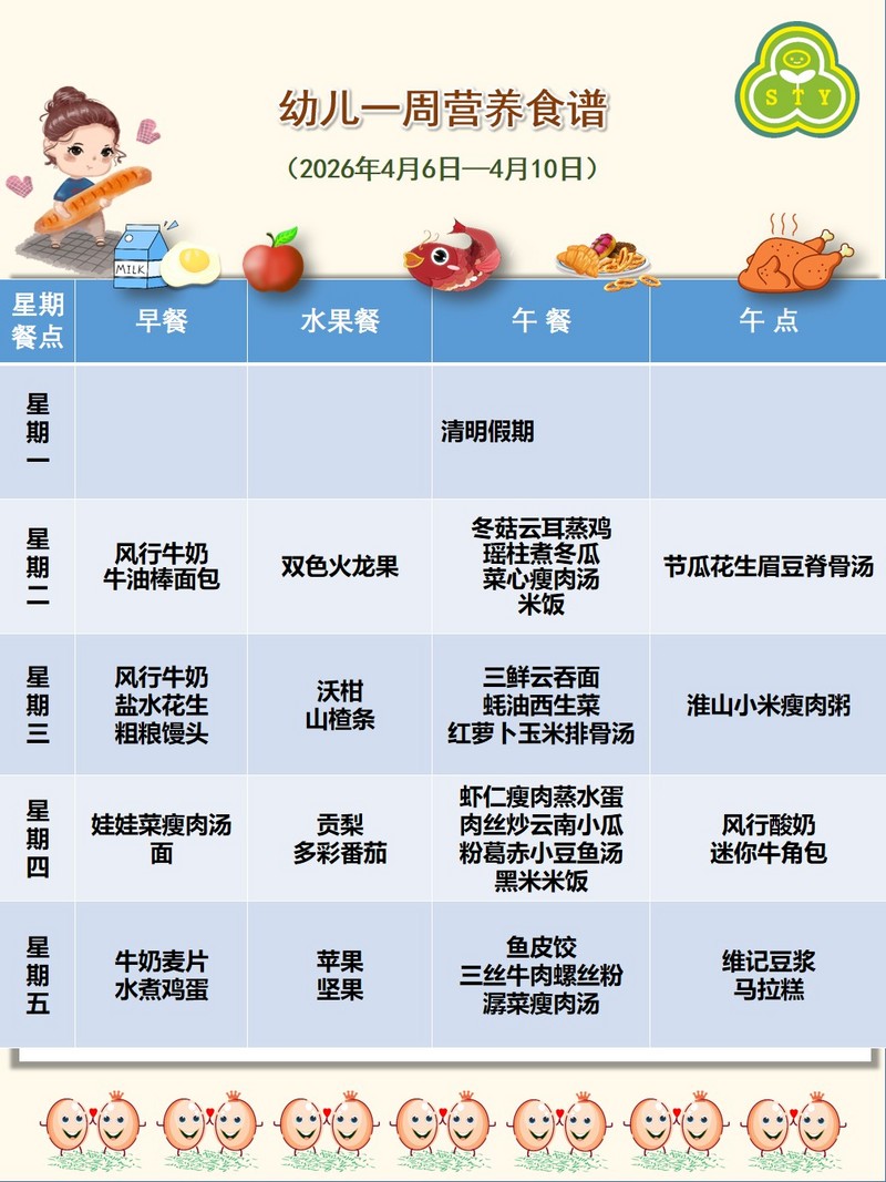 幼儿一周营养食谱(2026年4月6日-4月10日)